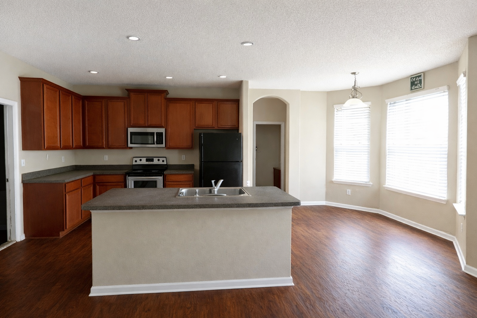 Beautiful 4-bedroom, 3-bath home designed for comfort and entertaining. The first floor features elegant wood flooring, while the bedrooms offer cozy carpeting. Enjoy a fully equipped kitchen with 42" cabinets, stove, refrigerator, and microwave, perfect for everyday living and hosting guests. The split-bedroom layout provides added privacy, complemented by vaulted ceilings and spacious walk-in closets. Step outside to a huge, fully fenced backyard ideal for relaxing or gatherings. Located in the highly desirable Oakleaf community, this home is one you won’t want to miss.